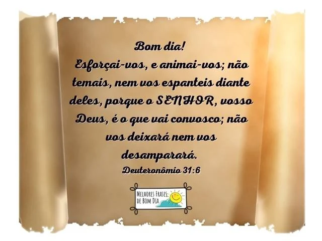 Esforçai-vos, e animai-vos; não temais, nem vos espanteis diante deles, porque o SENHOR, vosso Deus, é o que vai convosco; não vos deixará nem vos desamparará.